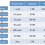 (* 이 포스트는 MIT에서 제공되는 Computation Structures 3의 강좌를 요약한 내용이다.) Memory의 가장 큰 목표는 적당한 capacity를 가지면서 빠른 Access time을 가지는 것이다. 하지만 locality라는 특성때문에 capacity가 커지면 커질수록 해당 영역에 대한 Access time은 커질 수밖에 없다. 이를 해결하기 위해서 대부분의 CPU는 몇가지 단계로 나눠진 Cache level을 가진다. Access time을 보면 알겠지만 level이 낮을수록 용량이 낮지만 그만큼 CPU에 가깝기 때문에 Access time에서 이점을 가져올 수 있고, level이 높을수록 access time이 높아지면서 더 많은 데이터를 가질 수 있게 된다. Cache의 역할은..