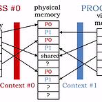 Context란 page map상의 entry에 의해서 교환되어지는 정보들을 말한다.사실상 cpu가 memory를 접근하는데 있어서 다뤄지는 정보를 말할 수도 있겠다. 아무튼 프로그램이 구동되려면 해당 프로그램도 실제 physical memory상에 올라가야 하는데, 이 것도 일종의 context로 구성되어 있다고 할 수 있다. 참고로 이런 context는 프로그램상으로 중복되지 않는다. 아는 개념이겠지만, 프로그램이 shared memory를 쓰지 않는 이상, 사용하는 memory 영역은 각각 독립적이며, 예를 등러 어떤 프로그램내에서 virtual address 0번이 가리키는 physical address는 다른 프로그램내의 virtual address 0번이 가리키는 physical address..
