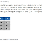 요새 듣고 있는 강의중에 Network내에서의 현상을 다루는 강의가 있는데 거기서 배운 개념 중에 Nash Equilibrium 이라는 게 있다. 아마 Beautiful Mind 라는 영화를 본 사람이라면 이 사람이 어떤 사람인지 잘 알 것이다. 수업 관련 문제를 풀다가 다시 정리할 필요가 있어서 문제랑 같이 요약해본다. 위의 문제는 Nash equilibrium을 맞출 수 있는 Strategy, 즉 가장 최적의 solution을 찾는 문제이다. 각 행렬요소의 첫번째 인자가 U,M,D를 선택했을때의 가치이고, 각 행렬요소의 두번째 인자가 각각 L,M,R을 선택했을 때의 효용가치( 책에서는 payoff 라고 한다 )를 나타낸 것이다. 예를 들어서 내가 U와 L을 선택했다면 내가 U를 통해서 얻을 수 있는 ..