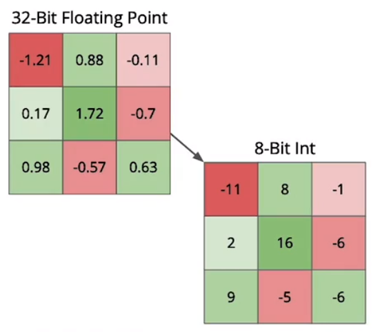 Quantization은 Model을 구성하는 weight이나 bias들이 과연 몇 bit으로 표현하느냐와 연관된 내용이다. 물론 정확성 측면에서는 각 weight와 bias들이 소수점 자리까지 정확히 update하고 계산에 활용하는 것이 좋겠지만, 그런 소수점이란 기능을 활용하기 위해서는 기본적으로 소수점을 지원하는 자료형을 사용해야 한다. 가장 기본적으로 알고있는 자료형이 FP32, 즉 32bit floating point value를 써야한다는 것인데, 이렇게 만든 모델을 실제 Edge단인 Embedded board에는 올리기 힘들다. 대신 32bit으로 표현한 값을 어느정도 정수로 표현해주면 소수점으로 표현해줄때보다는 model의 accuracy가 나빠지겠지만, 적어도 사용할 수 있는 용량이 제한적인 보드에 올리고자 할때에는 이점으로 작용할 수 있다. Quantization은 바로 이런 model의 precision을 줄이는 과정이라고 보면 된다. Intel OpenVINO Toolkit에서 제공되는 model은 기본적으로 FP32형으로 되어 있긴 하지만, Toolkit내에 포함되어 있는 Model Optimizer를 통해서 FP16(16bit floating point)나 INT8(8bit integer)등으로 변환시킬 수 있다. 물론 FP32를 사용할때보다 FP16나 INT8을 썼을 때 accuracy가 나빠지겠지만, model을 작게 만들고, model내에서 수행되는 연산도 그만큼 빨라지게 되므로, 이런 edge training에서 많이 사용되는 기법이다.