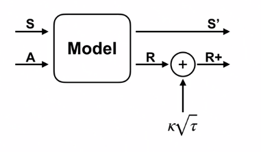 $$ Q(S,A) \leftarrow Q(S,A) + \alpha \big[ r + \kappa \sqrt{\tau} + \gamma \max_{a}Q(S',a) - Q(S,A) \big]$$
