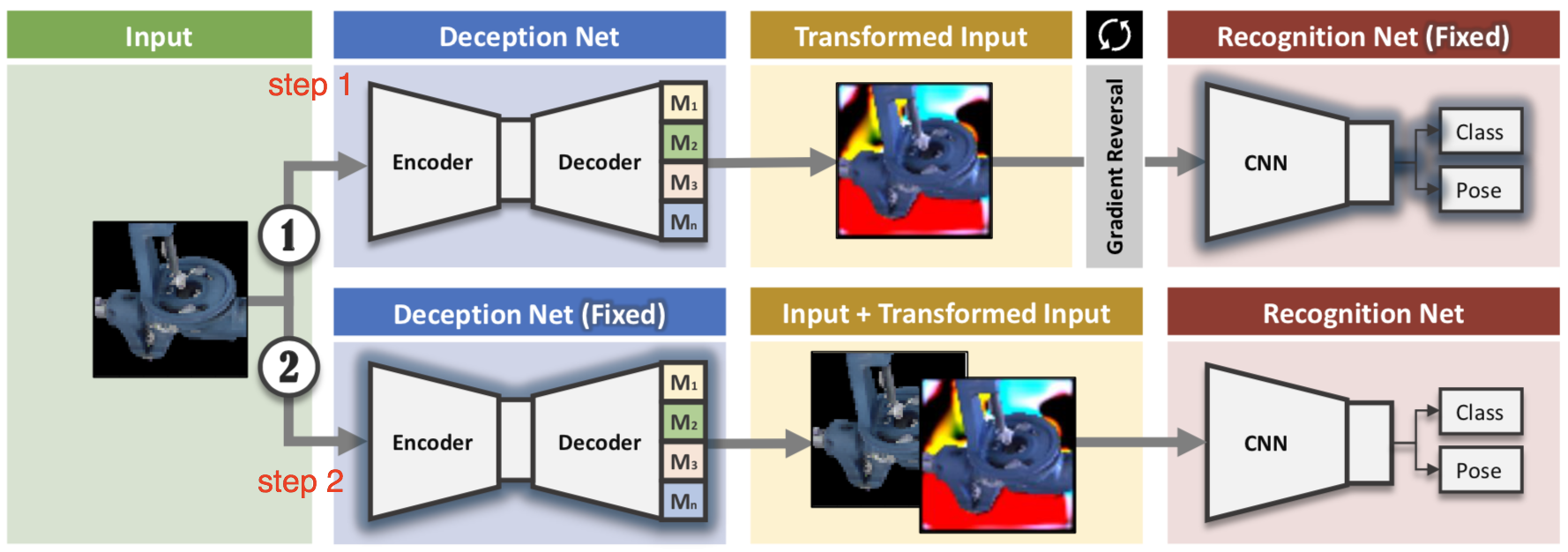 - 위의 와정에서 deception module이 결정되면, input image를 바꿔가면서 recognition network을 학습시킨다.