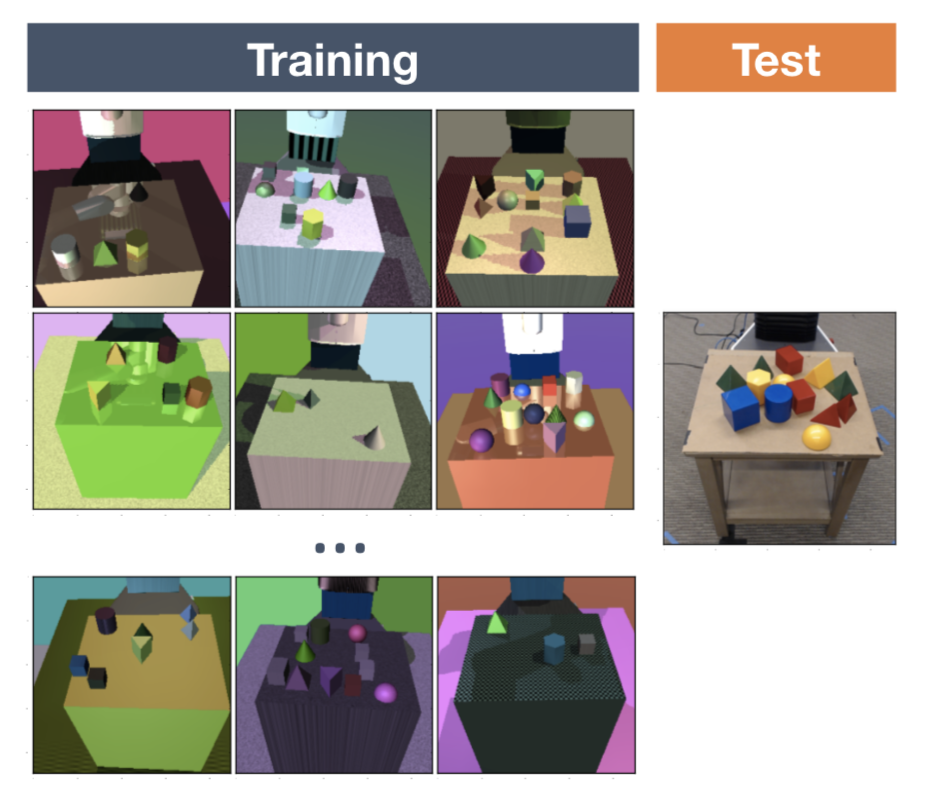 - Domain randomization (DR)을 사용하면, 랜덤한 특성을 가진 여러가지 simuation 환경을 만들 수 있고, 이 환경 기반으로 model을 학습시킬 수 있다.