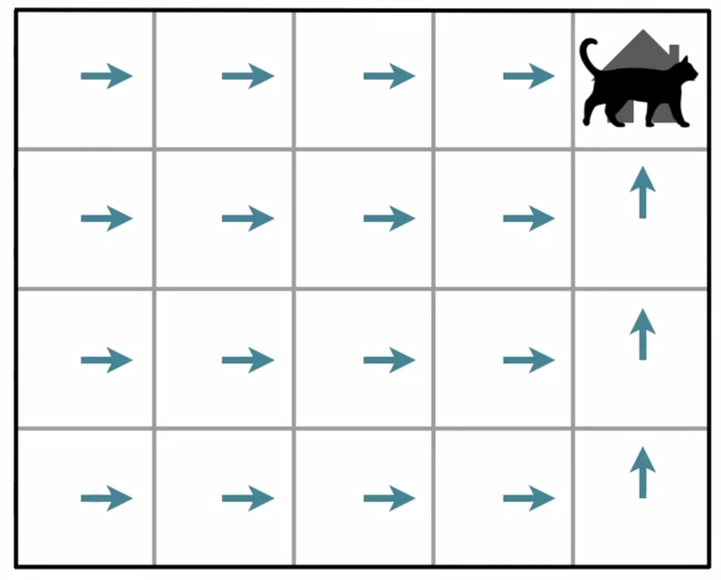 Behavior policy 역시 단어 뜻 그대로, action을 선택하는 policy를 나타낸다. 그 대신 현재 action을 취하고 있기 때문에 현재 수행하는 policy의 좋고 나쁜 여부를 확인을 할 수 없다. 일반적으로는 위 그림과 같이 exploration이 포함된 policy가 이 behavior policy의 범주에 들어있다. 이 때문에 policy 자체도 stochastic하고, continual exploration이 발생할 여지가 target policy에 비해 크다.