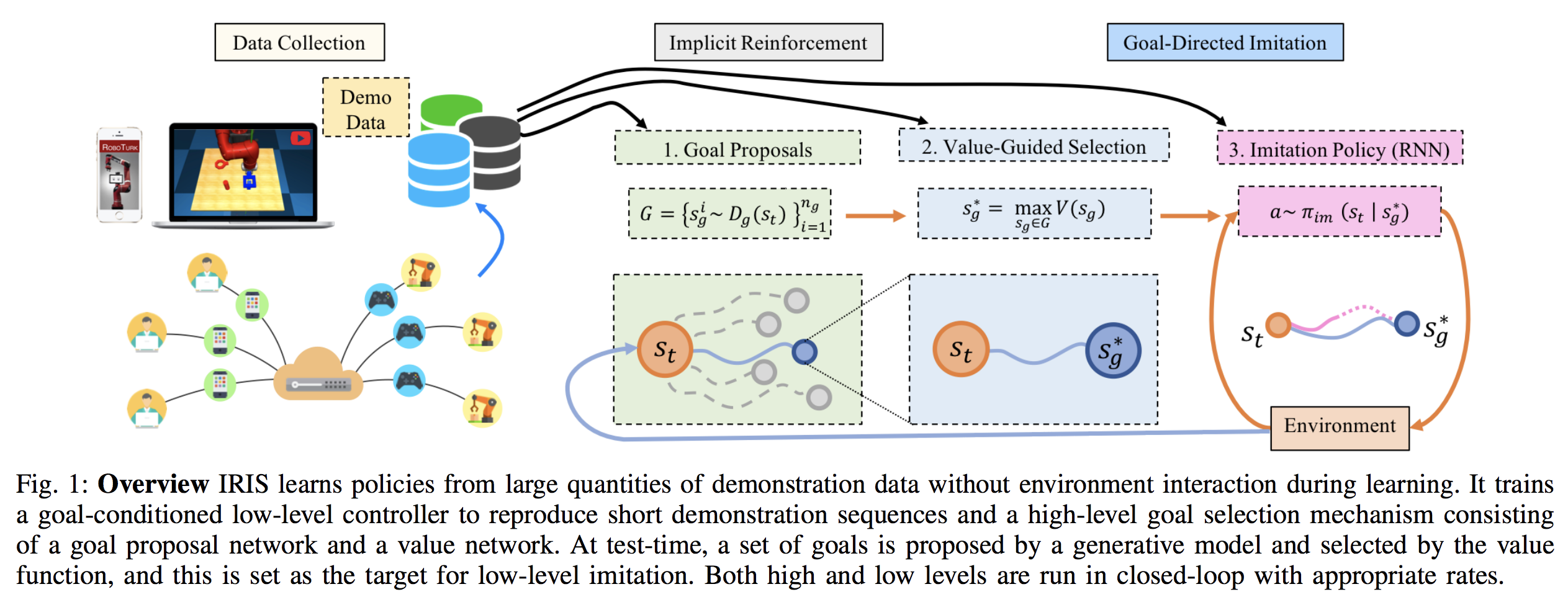 이 논문은 IRIS: Implicit Reinforcement without Interaction at Scale 이란 알고리즘에 대해서 제안했다. 이 알고리즘은 대단위의 로보틱스 데이터로부터 offline 학습을 하는 것에 특화되어 있는데, 이 데이터에는 부가적으로 최적화되어있는 것도 있고, 고도로 multi-modal이 되어 있을 수도 있다. 이 알고리즘은 이번 포스트에서 내가 소개한 다른 논문들처럼 Batch RL 형태를 따르고 동일한 off-policy 알고리즘으로부터 파생되었는데, 이 논문에서는 그 논문들을 많이 인용되어 있다는 사실도 발견했다.